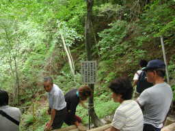 | 富山に向かう峠道の中腹の左ヘアピンカーブのガードレールの外に「十三士の墓」と書かれた木の案内看板があります近くのバンガロー内にて撮影 |